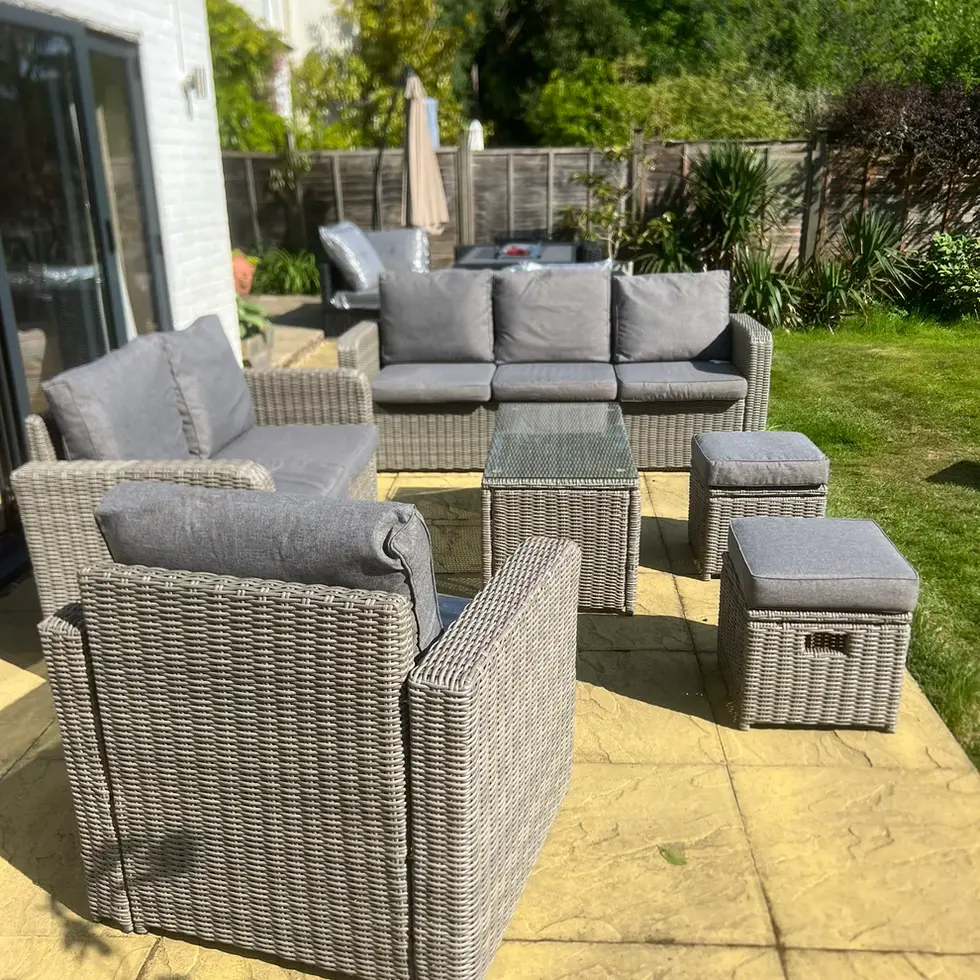 Expertly crafted and designed, the luxury rattan 6 piece sofa set offers both comfort and style. With a 3 seater sofa, 2 seater, 1 chair, coffee table and 2 stools, this set provides ample seating for outdoor gatherings. Made with durable rattan, this set is both luxurious and long-lasting.